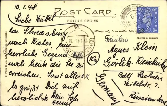 Zustand, siehe Scan, gelaufen, 1948 - ca 14 cm X 9 cm