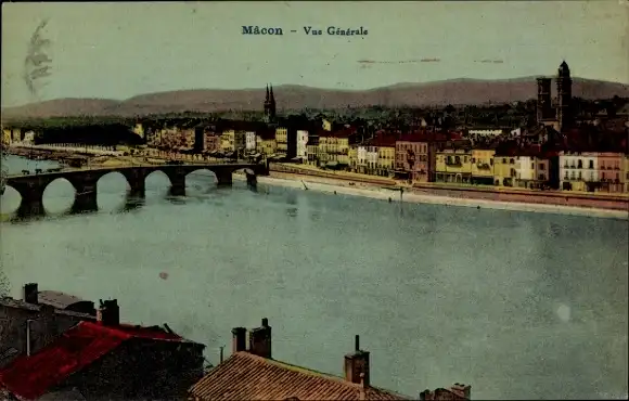 Ak Mâcon Saône-et-Loire, Vue Generale, Brücke