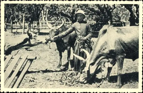 Ak Madagascar, madagassischer Bruder kümmert sich um Zebus