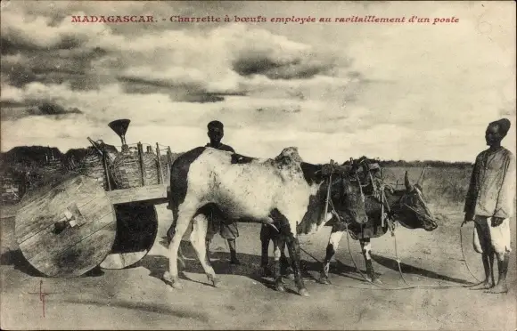 Ak Madagaskar, Charrette a boeufs employee au ravitaillement d'un poste