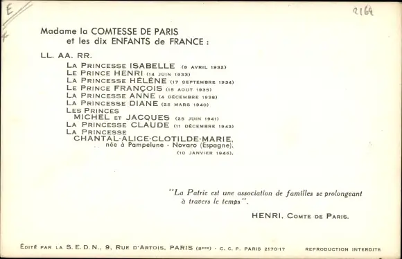 Ak Madame la Comtesse de Paris et les dix Enfants de France, Princesse Isabelle, Prince Henri