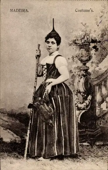 Ak Madeira, Portugiesin in Tracht, Porträt
