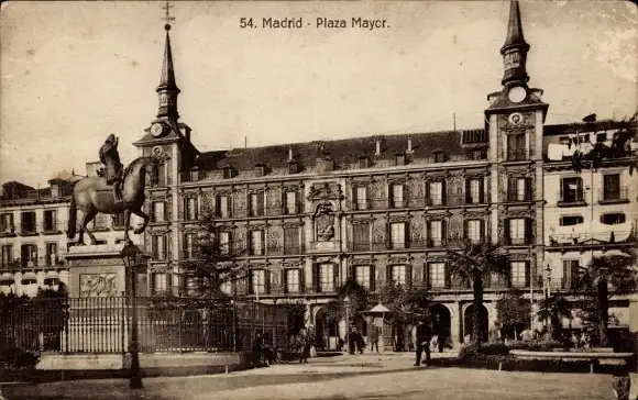 Ak Madrid, Plaza Major, Reiterstandbild von Philipp III.