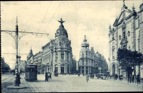 Ak Madrid, Spanien, Calle de Alcala und Gran Via
