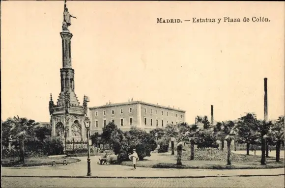 Ak Madrid Spanien, Estatua y Plaza de Colón