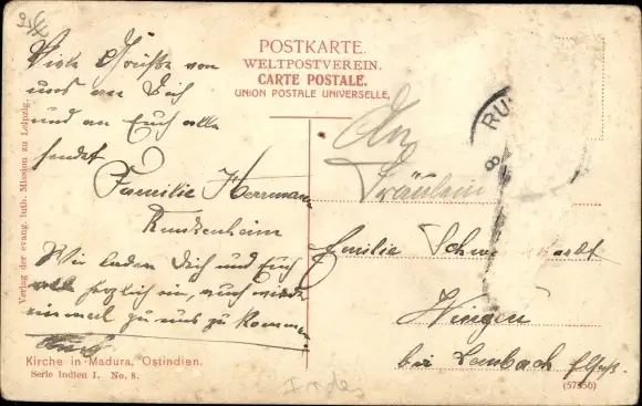 Ansichtskarte, Postkarte, Madura, Madurai, மதுரை, Maturai, Kirche