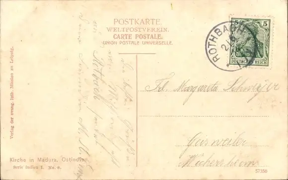 Ansichtskarte, Postkarte, Madura, Madurai, மதுரை, Maturai, Kirche