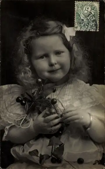 Ak Mädchen-Porträt, Früchte, Kirschen