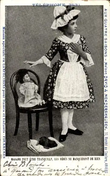 Ak Mädchen-Porträt, Puppe, Stuhl
