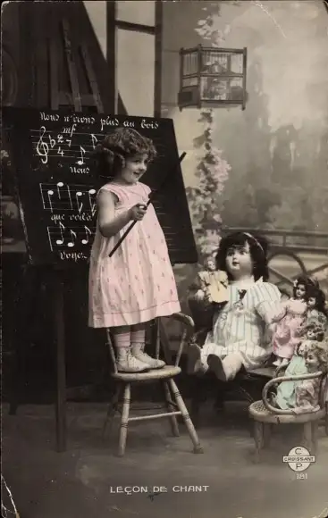 Ak Mädchen als Lehrerin vor ihren Puppen, Musikunterricht