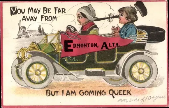 Ak Mädchen am Lenkrad, You may be far avay from Edmonton, but I am coming queek