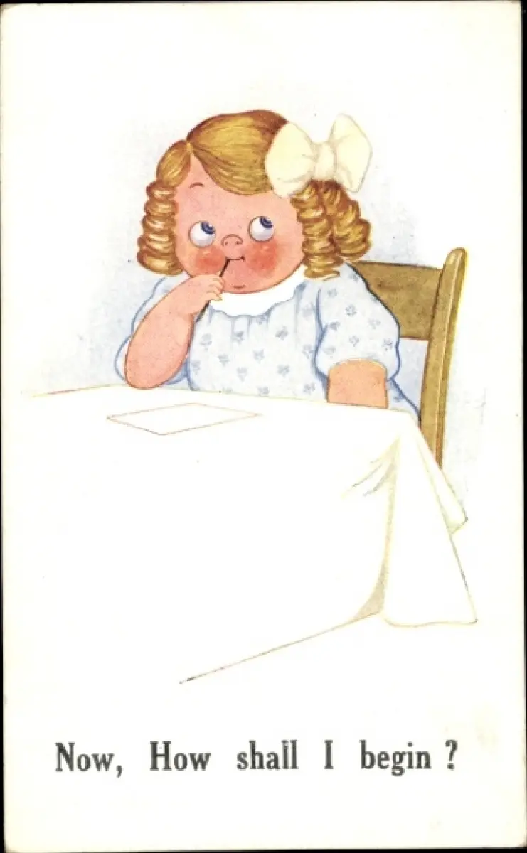 Ak Mädchen am Tisch schreibt einen Brief