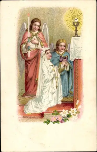 Ak Mädchen beim Beten, Kirche, Engel, Kerze