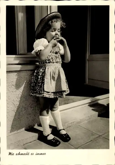 Ak Mädchen beim Essen, Mir schmeckt es immer