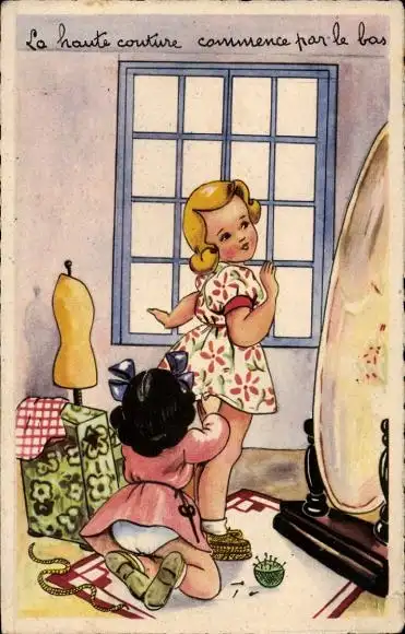 Ak Mädchen beim Nähen, Schneider, Nadeln, Spiegel