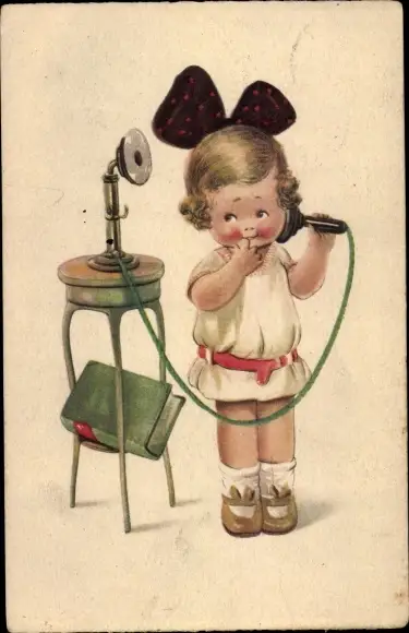 Ak Mädchen beim Telefonieren, Telefon, Buch