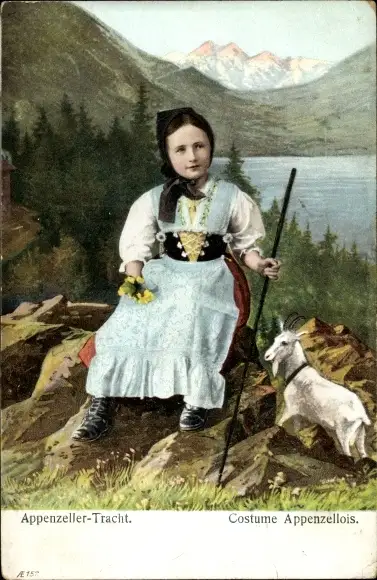 Ak Mädchen in Appenzeller Tracht, Ziege