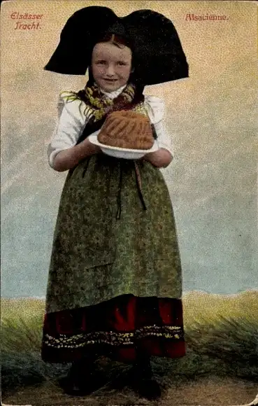 Ak Mädchen in Elsässer Tracht, Elsässerin, Kuchen