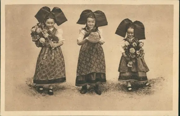 Ak Mädchen in Elsässer Volkstracht, Gratulanten, Geschenke, Kuchen