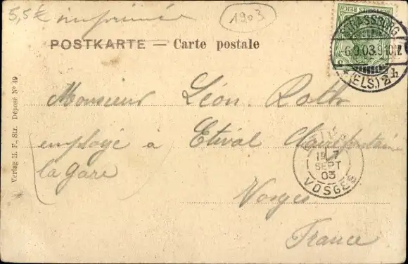 Zustand, siehe Scan, gelaufen, 1903 - ca 9 cm X 14 cm