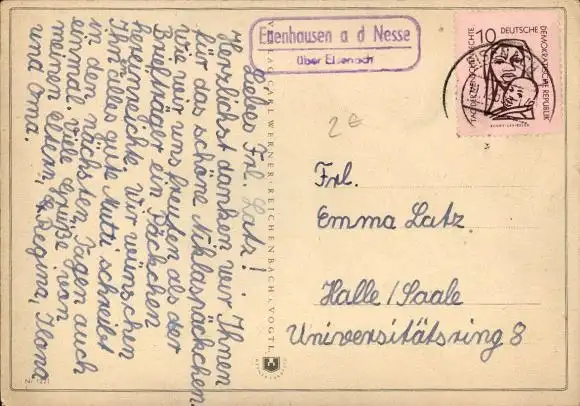 Zustand, siehe Scan, gelaufen- Landpoststempel Ettenhausen an der Nesse über Eisenach - ca 5 cm X 3 cm