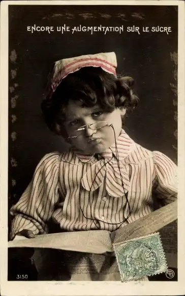 Ak Mädchen liest eine Zeitung, Brille, Portrait