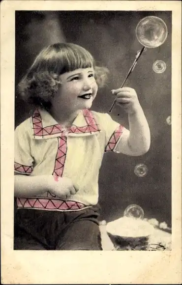 Ak Mädchen macht Seifenblasen, Porträt