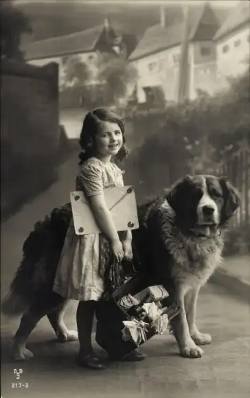 Ak Mädchen mit Bernhardiner, Portrait