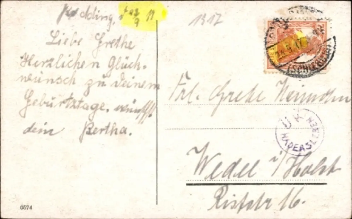 Zustand, siehe Scan, gelaufen, 1917 - ca 9 cm X 14 cm