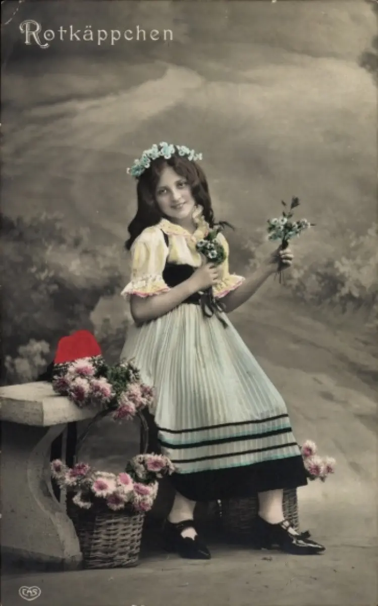 Ak Mädchen mit Blumen, Portrait, Rotkäppchen