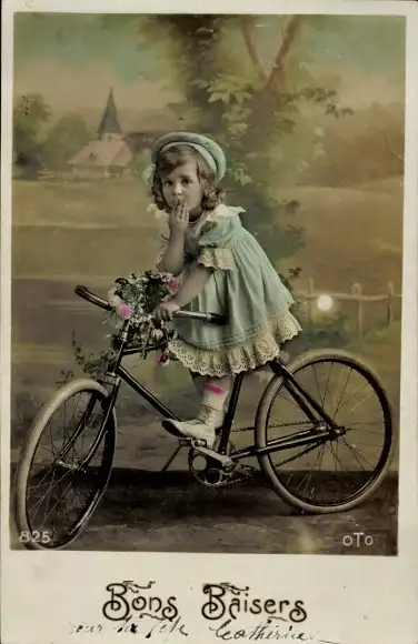 Ak Mädchen mit Fahrrad, Radfahrerin