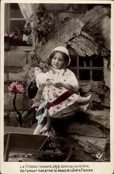 Ak Mädchen mit Puppe, Porträt, Spielzeug