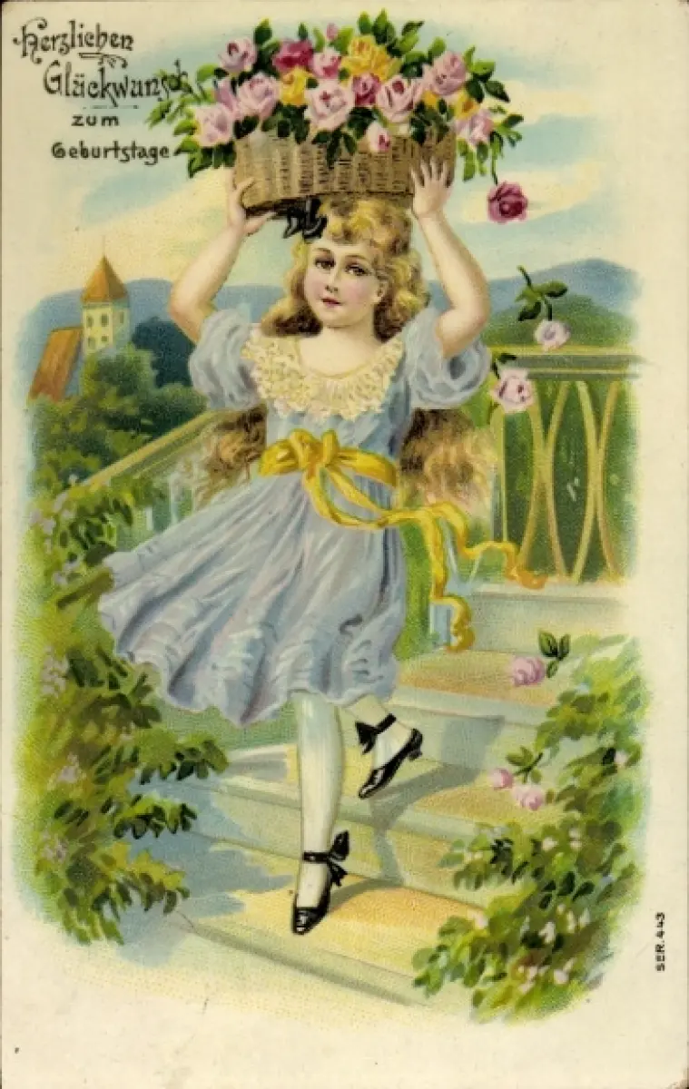 Ak Mädchen mit Rosen in einem Korb
