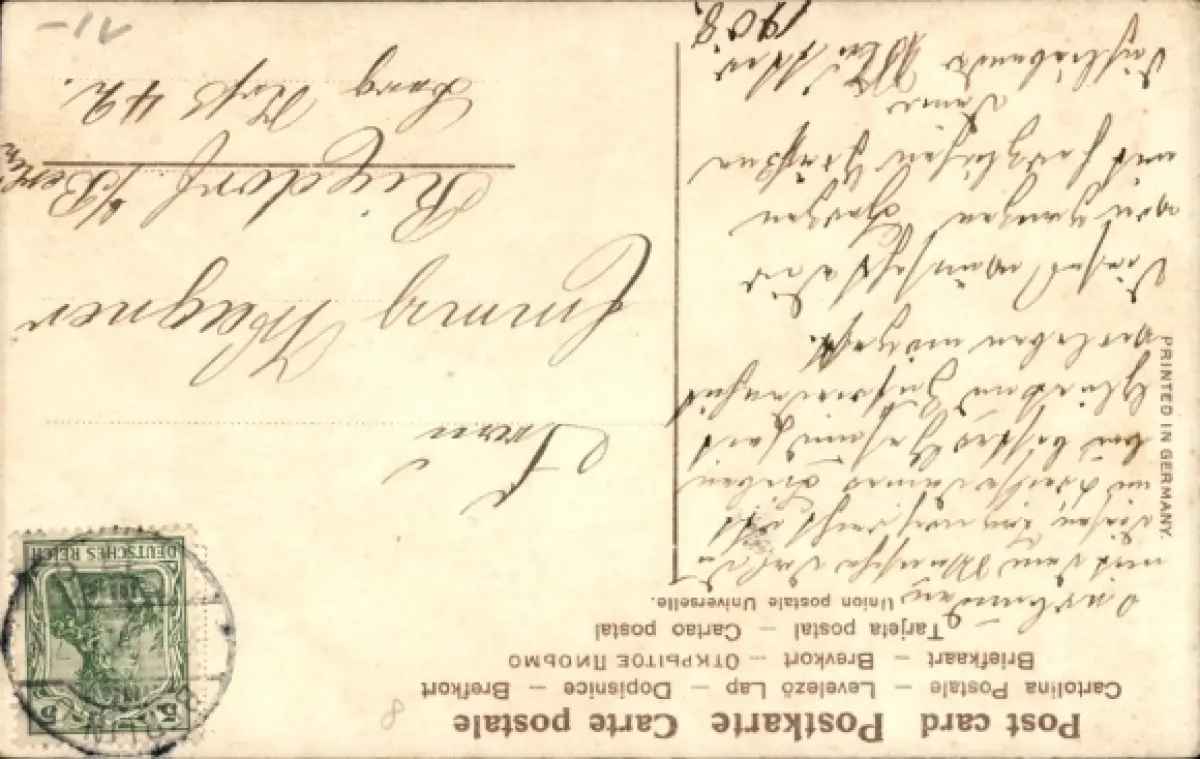 Zustand siehe Scan, 1908, gelaufen - ca 9 cm X 14 cm