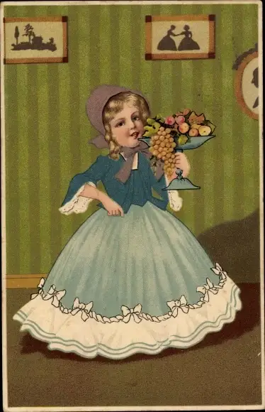 Ak Mädchen mit Schale mit Früchten, Kleid, Portrait