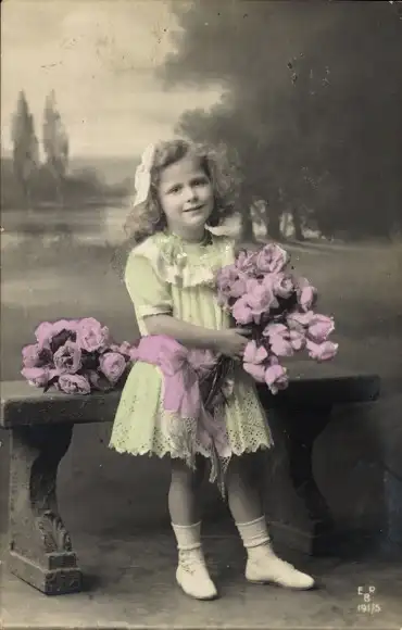 Ak Mädchen mit einem Blumenstrauß, Rosen