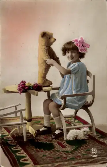 Ak Mädchen mit einem Teddy