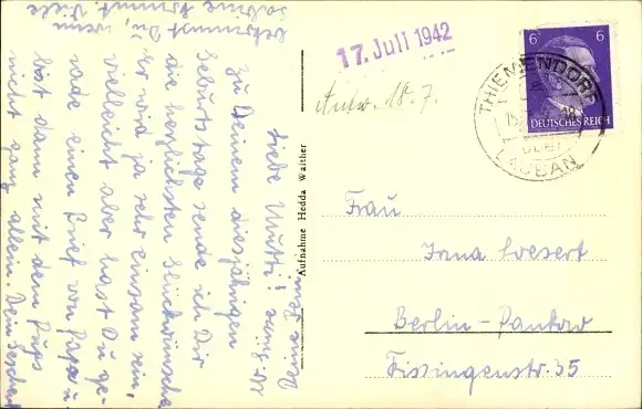 Zustand, siehe Scan, gelaufen, 1942 - ca 9 cm X 14 cm