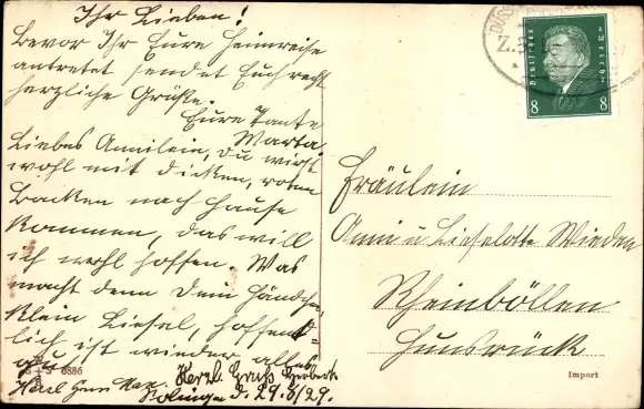 Zustand, siehe Scan, gelaufen, 1929 - ca 9 cm X 14 cm