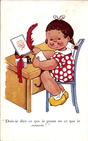 Ak Mädchen sitzt am Schreibtisch und schreibt einen Brief