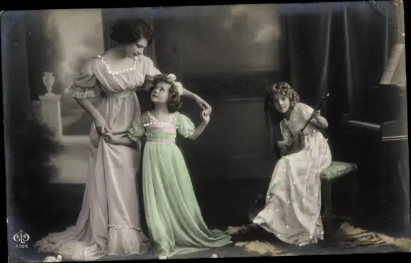 Ak Mädchen spielt Mandoline, Frau tanzt