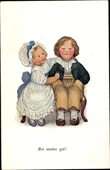 Ak Mädchen tröstet seinen Freund, Sei wieder gut