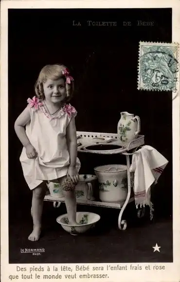 Ak Mädchen wäscht sich, Waschtisch, Waschschüssel