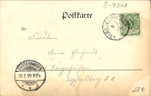 Zustand, siehe Scan, gelaufen, 1899 - ca 14 cm X 9 cm