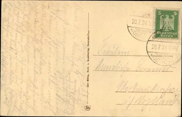 Zustand, siehe Scan, gelaufen, 1924 - ca 14 cm X 9 cm