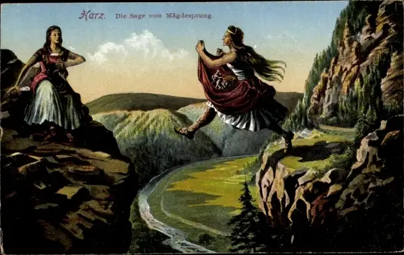 Ak Mägdesprung Harzgerode im Harz, Sage vom Mägdesprung, Felsen, Riesenjungfrau