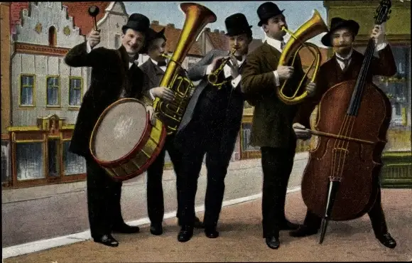 Ak Männer mit Musikinstrumenten, Trommel, Cello