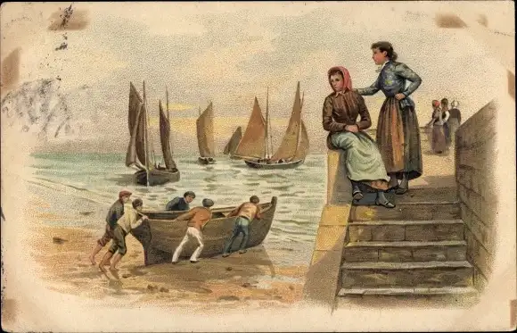 Ansichtskarte, Postkarte, Fischfang, Fischer, Angler, Perlenfischer, Fischerboot