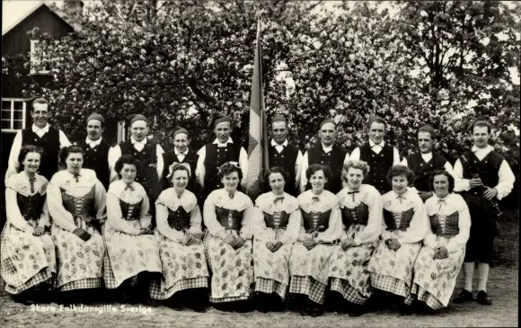 Ak Männer und Frauen in schwedischen Volkstrachten