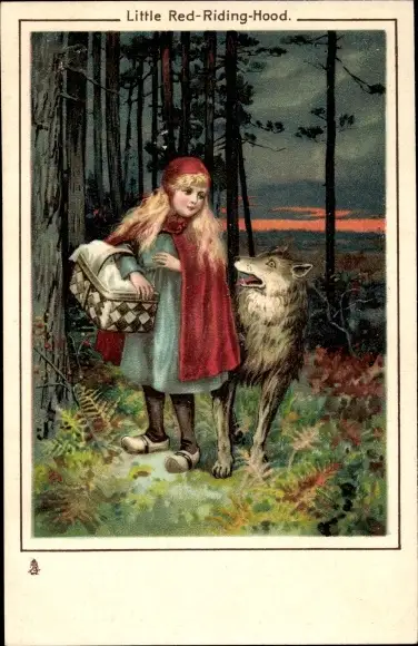 Ak Märchen, Rotkäppchen und der böse Wolf, Gebrüder Grimm